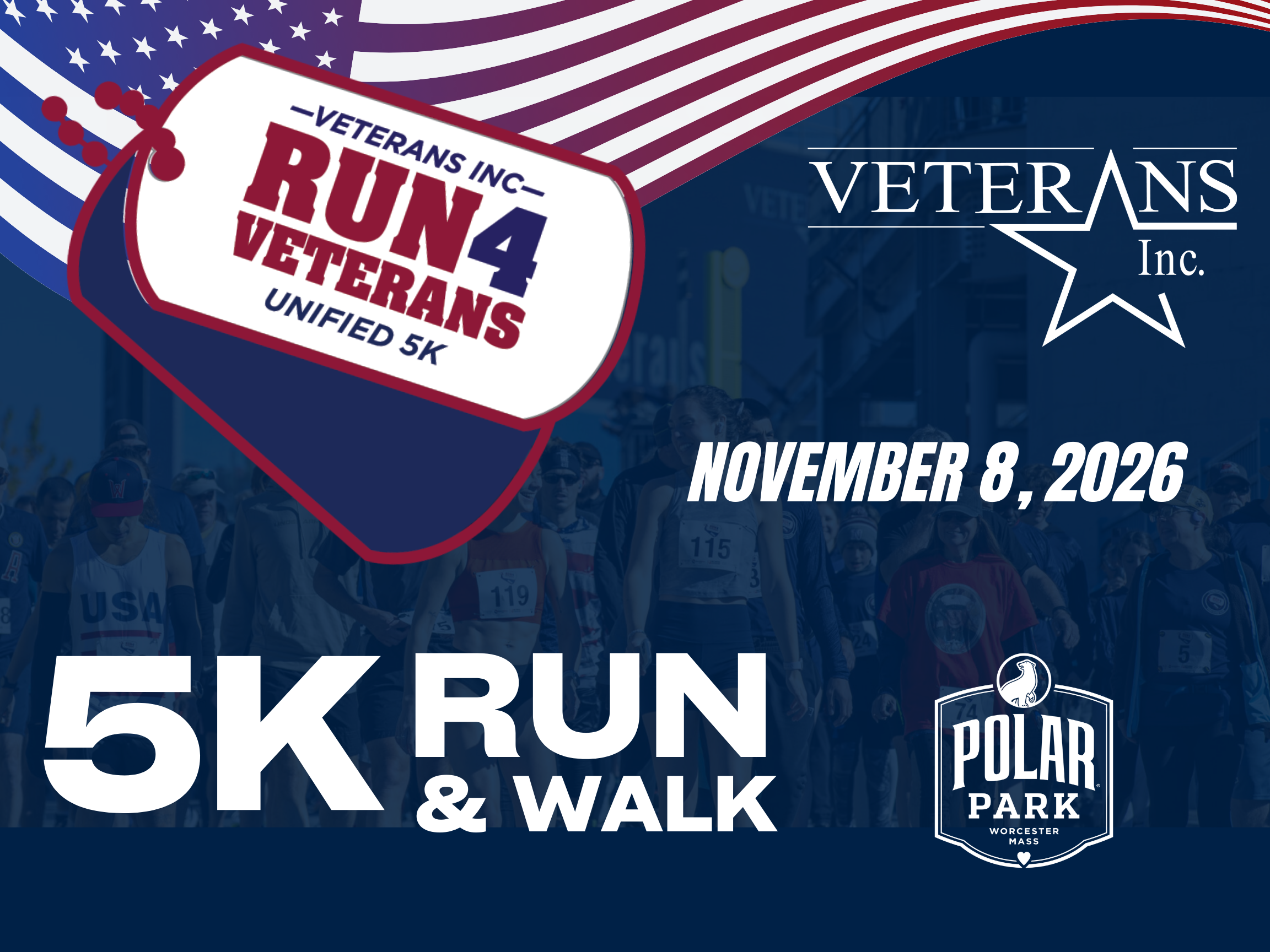 Run4Veterans is a charity 5k road race/walk to raise funds for Veterans Inc so we can continue to help Homeless Veterans in need. Each year, hundreds of runners and walkers take part in the annual event, to support the programs and services offered to our veterans and their family members.