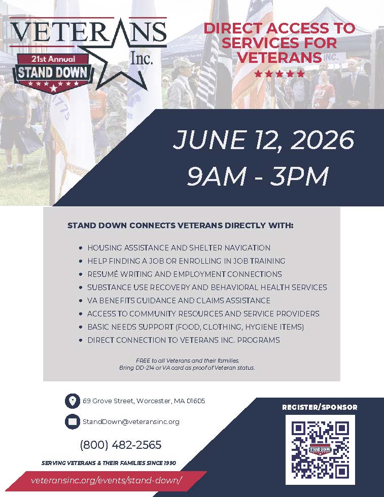Stand Down is Veterans Inc.’s annual resource event designed to connect Veterans and their families with helpful services, support programs, and community partners in one place. Whether you need immediate help or want to learn what resources are available, Stand Down is a welcoming place to begin.